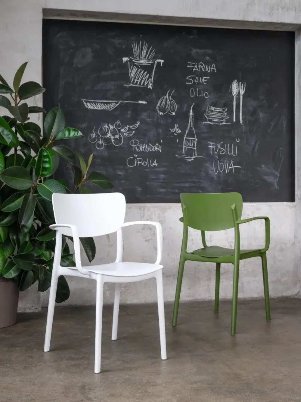 - Le composizioni arredative che distribuiamo, tra cui questa con sedia Con braccioli Friulsedie, sono sempre costruite con materie prime di qualità, quindi anche in plastica in uno o più colori; questa proposta in plastica resisterà negli anni unendo funzionalità e stile.
