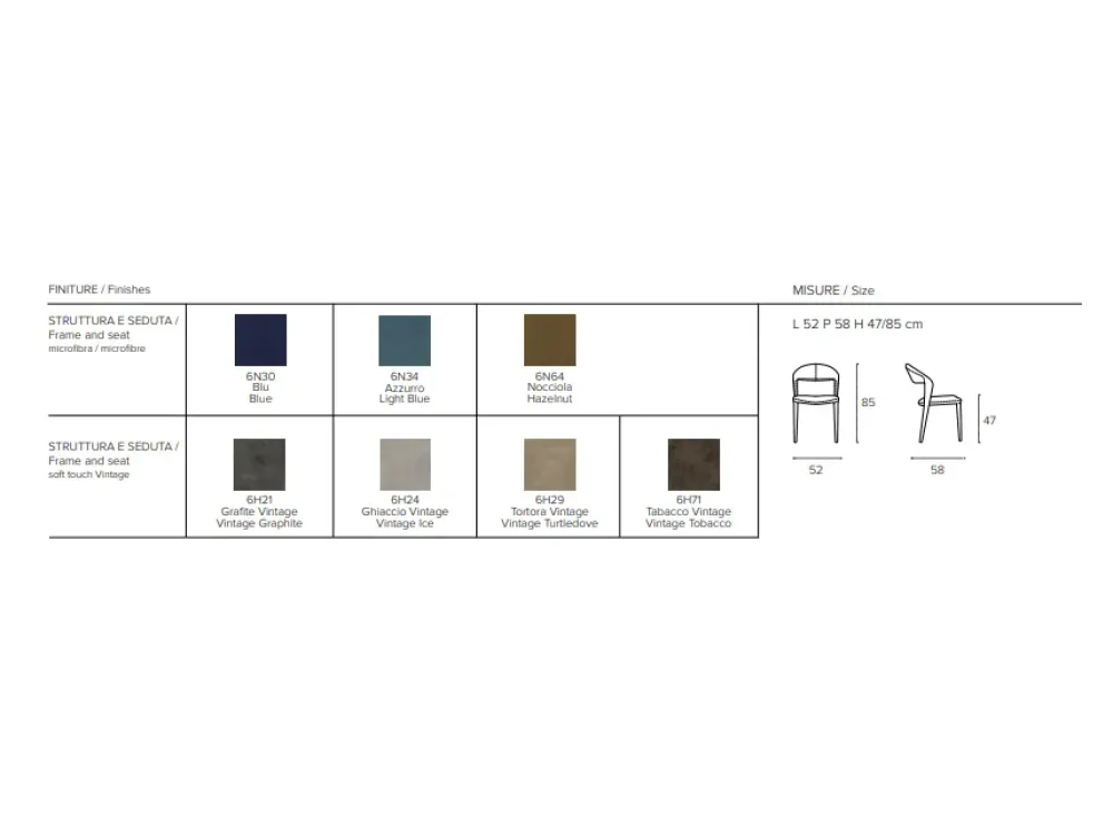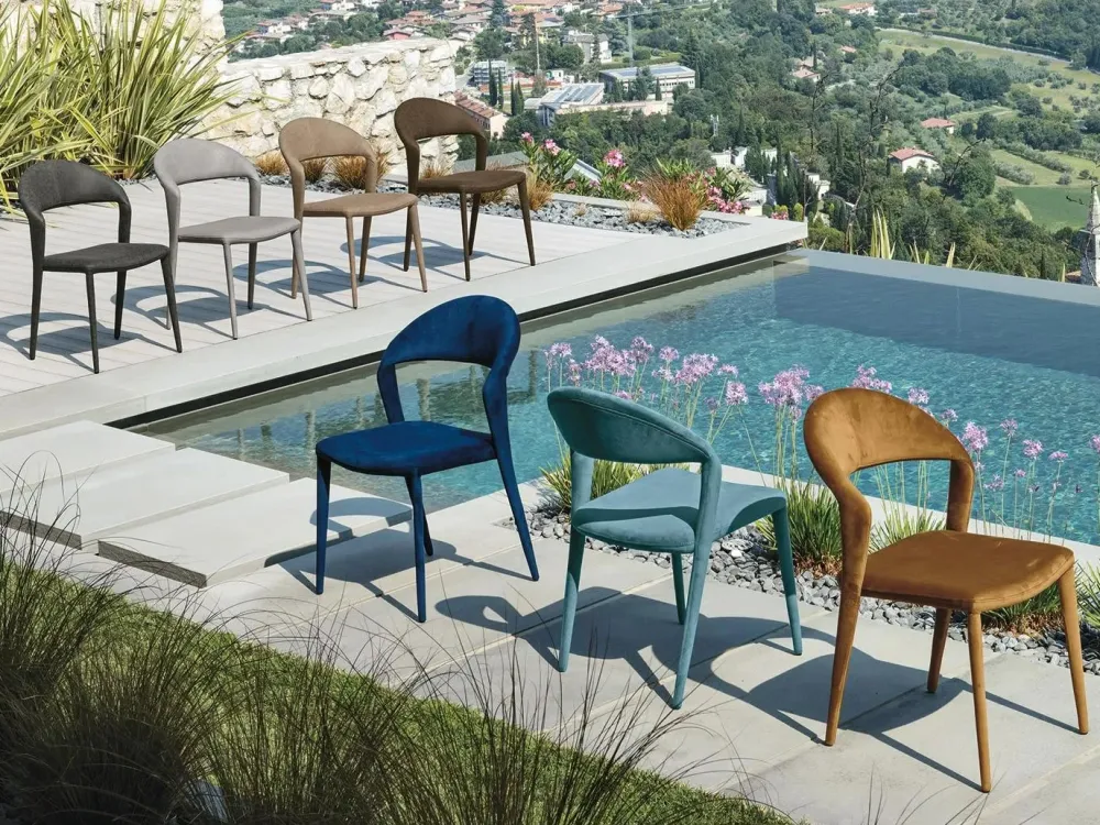 Sedia interamente rivestita in morbida microfibra effetto velluto o in soft-touch vintage.