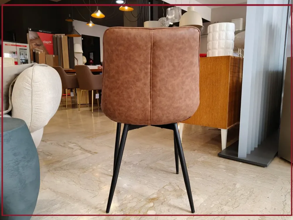 Il loro design pulito e senza tempo si inserisce con naturalezza in ambienti moderni, dove ogni dettaglio è pensato per valorizzare lo spazio senza sovrastarlo. Il rivestimento in ecopelle effetto vintage, con le sue sfumature e la lavorazione trapuntata, dona un senso di calore e vissuto, mentre le gambe in metallo nero Industry aggiungono un tocco deciso, quasi urbano, che le rende perfette anche in contesti più audaci.