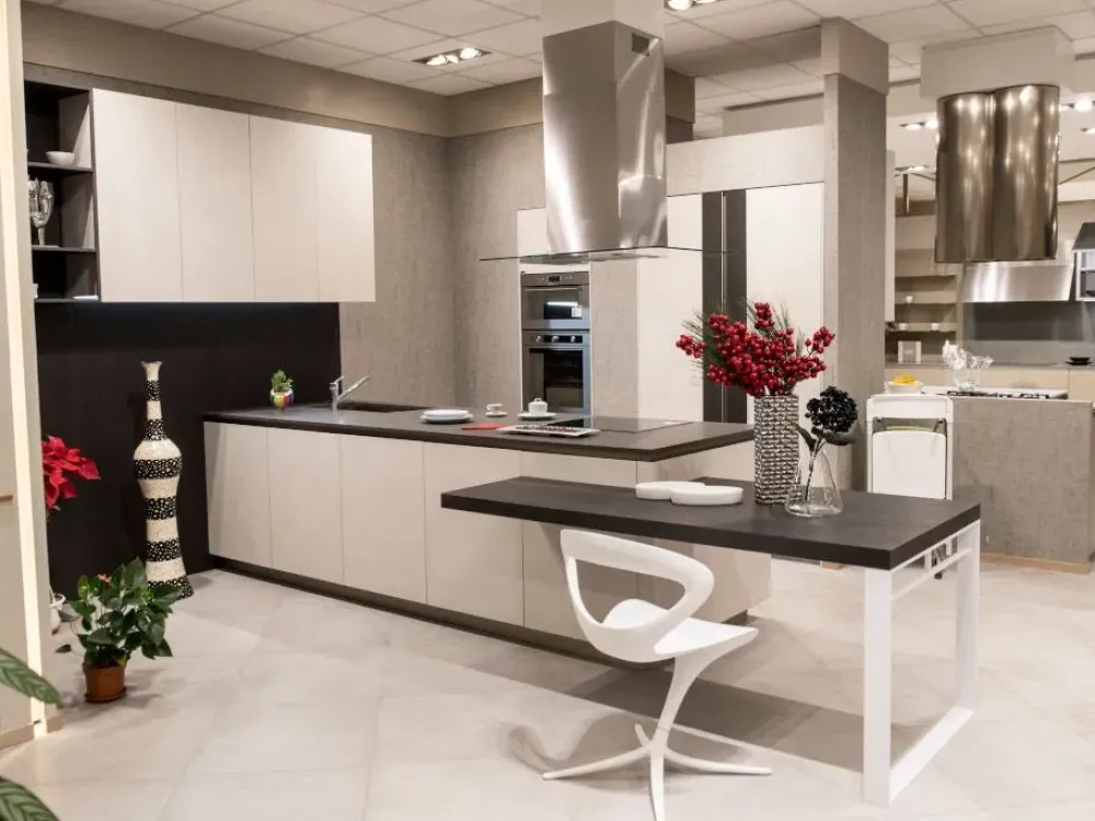 Hai già un’ispirazione rispetto al colore dei mobili e oggetti accessori per la tua cucina? Se una finitura grigia può seguire i tuoi gusti, allora la cucina nella fotografia fa al caso tuo. Questa cucina Way è disposta con penisola, ma potremo mostrarti anche ulteriori configurazioni, sempre adatte per te ed in materiali di prima scelta. Prediligi la cucina Way tra le molteplici composizioni moderne che presentiamo, poiché è capace di arricchire al meglio i locali. Se selezionerai questa cucina nel nostro Outlet, dovrai prendere in considerazione pure il prezzo della spedizione: trasporto incluso entro 100 Km per questa proposta. Questa soluzione in laminato materico sa combinare in modo ottimale funzionalità e stile, per l’uso di materiali di prima scelta e che resistano negli anni selezionati da noi.