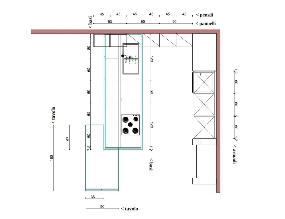 - Disposizione: con penisola