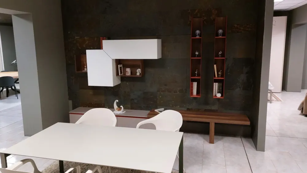 I mobili e oggetti accessori del living non devono mai essere di intralcio, per cui è tanto importante valutare anche le misure della composizione scelta: il modello presente in foto ha una larghezza che va da 301 a 350 cm.