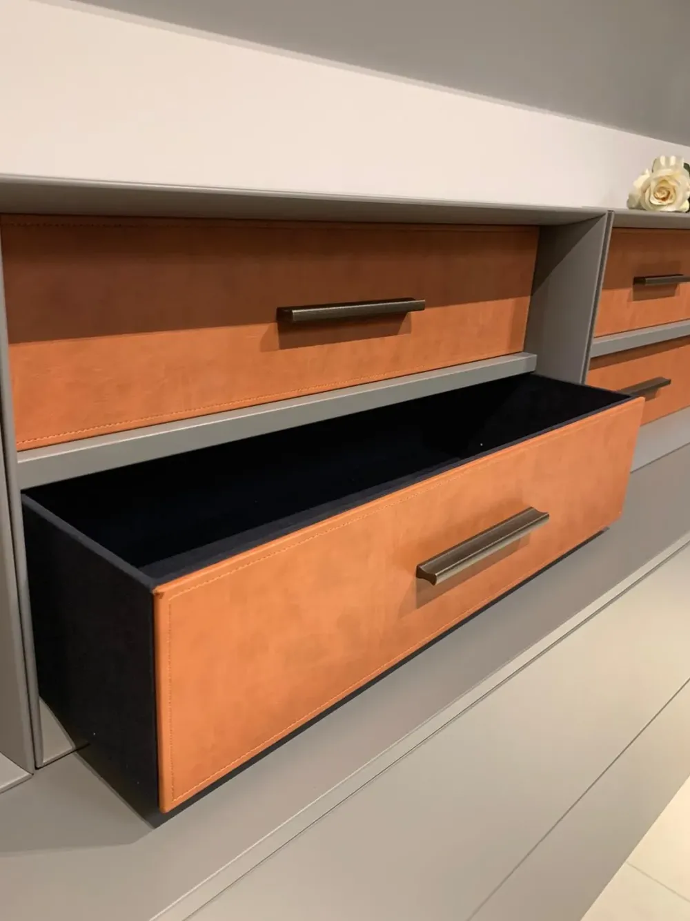 – 4 Cassetti con frontale in CUOIO.