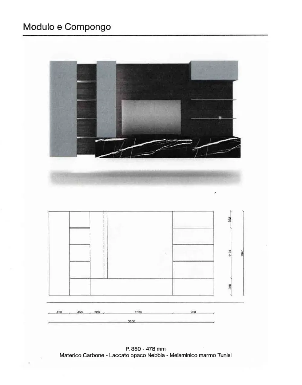 - Posizionamento sospeso: Grazie al posizionamento sospeso, questo soggiorno completo conferisce un aspetto leggero e moderno all’ambiente, oltre a facilitare la pulizia del pavimento sottostante.