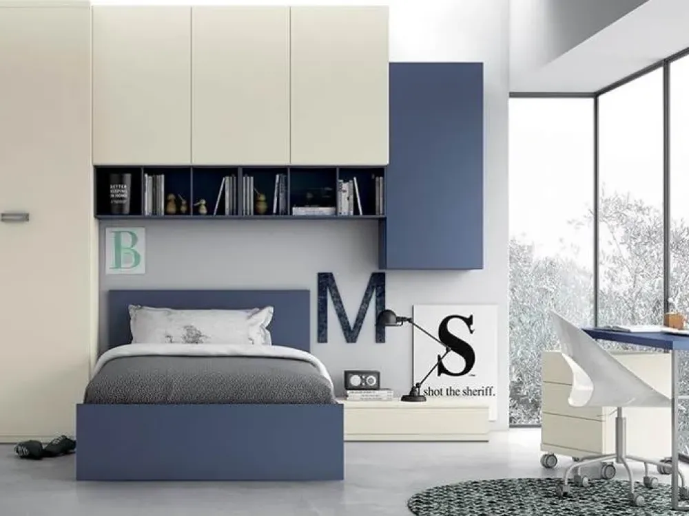 Il marchio offre camerette per bambini e teenager, per soddisfare le diverse necessità: la cameretta è lo spazio in cui cresceranno divertendosi e sognando, quindi deve riflettere le loro passioni e seguirli durante il loro sviluppo. Tra composizioni a terra o estremamente compatte, potrai trovare sicuramente ciò che fa al caso tuo: il modello Mobilspaqui disponibile è una cameretta con letto una piazza e mezza.