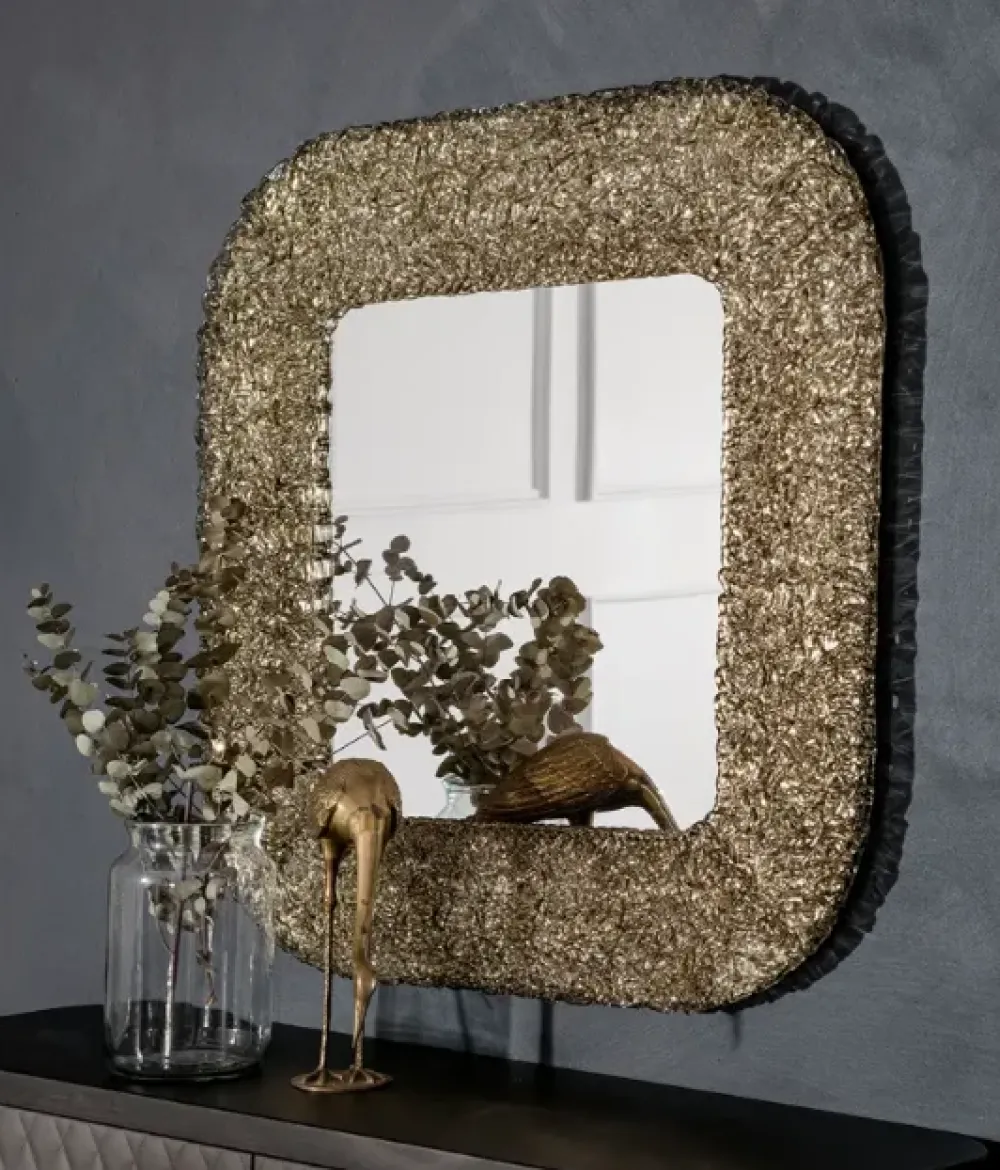 Una colata di vetro fuso che veste di eleganza uno specchio quadrato o rettangolare pensati per dare un tocco di lusso alla tua casa.