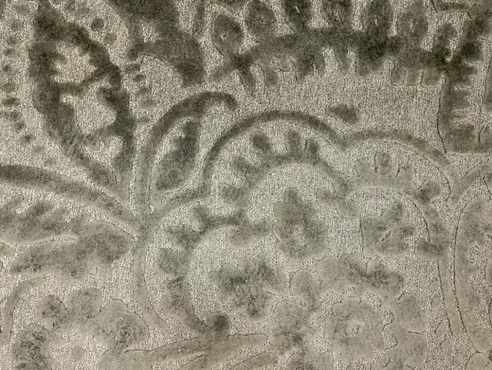 Tappeto in 100% Viscisa, colore antracite a motivo floreale.