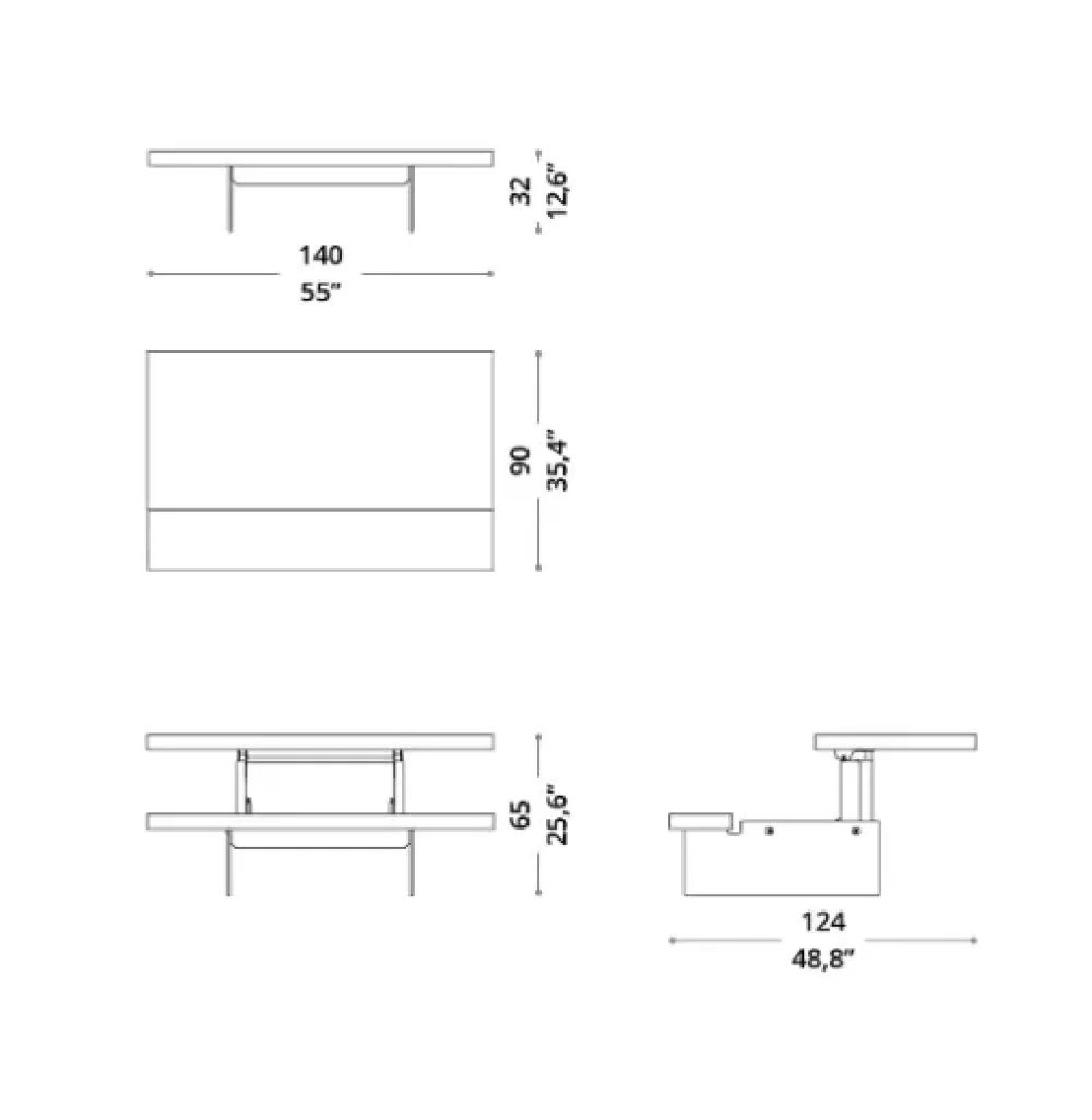 Markus è un tavolino trasformabile a 2 altezze (cm 32>cm 65) con struttura in metallo,