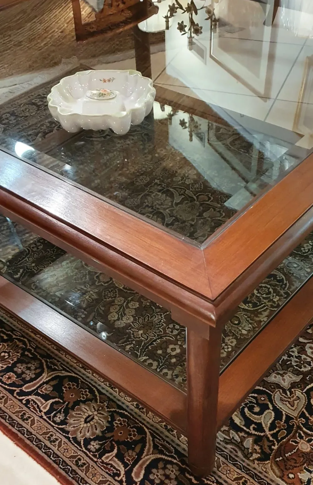 Tavolino modello Mogano e vetro molato con forte sconto