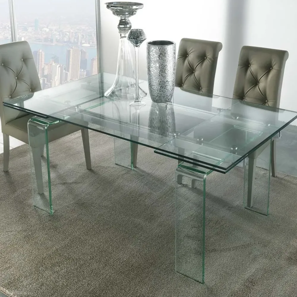 - 1. Il tavolo La Seggiola Modello 676 è un tavolo allungabile di forma rettangolare con un piano in vetro di alta qualità e un basamento a quattro gambe.