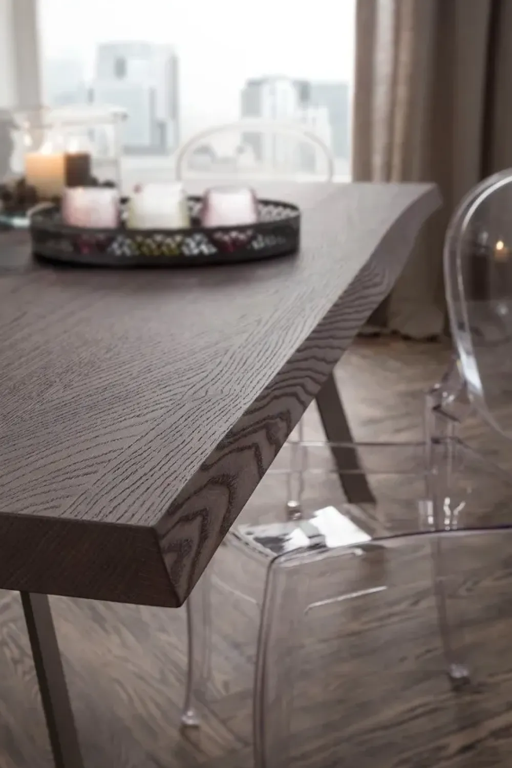 - I pezzi di arredo non devono mai risultare ingombranti, innanzitutto per quanto concerne lo spazio che impegnano secondo la configurazione dei locali; per cui è così rilevante valutare con attenzione anche le misure del tuo tavolo: il modello Fisso Bruno visibile in foto ha una lunghezza che va da 191 a 220 cm ed è dunque ideale per un ambiente di diverse volumetrie.