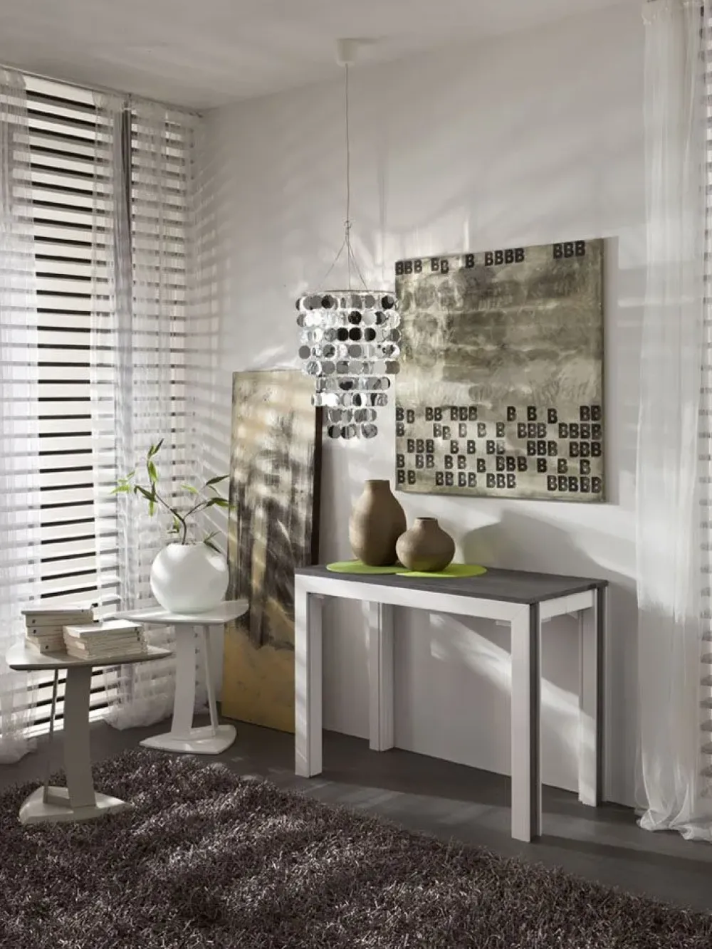 - Quando gli edifici abitativi impegnano spazi ristretti, occorre scegliere i mobili secondo forma e dimensione dei locali allo scopo di ottimizzare lo spazio; è imprescindibile quindi valutare anche quale tipologia di consolle sia l’ideale: se vuoi un complemento accessorioche ti consenta di avere sempre un posto in più per ogni possibile ospite, la consolle allungabile Mattia fa per te!