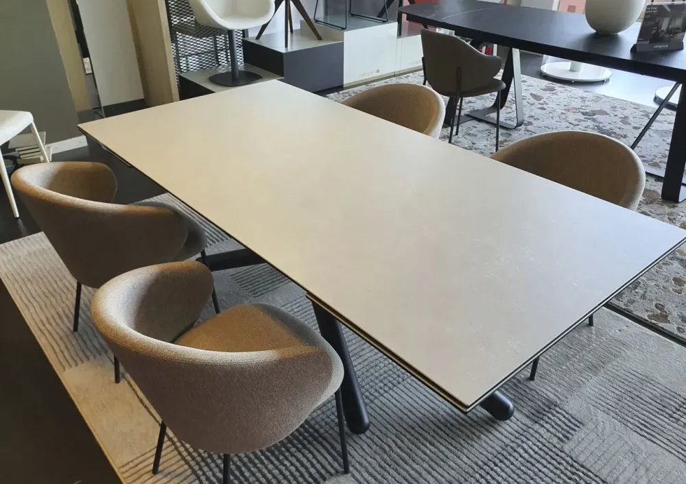 - Se stai considerando diverse composizioni arredative con tavoli di qualsiasi misura e forma per la tua abitazione, non scordare di valutare attentamente anche le finiture con cui sono stati costruiti i piani: il cristallo, il legno, il metallo e le materie plastiche sono solo alcuni dei materiali caratterizzati da intrinseche doti di funzionalità e stile; il tavolo Duel qui in saldo comprende un piano in ceramica di gran classe.
