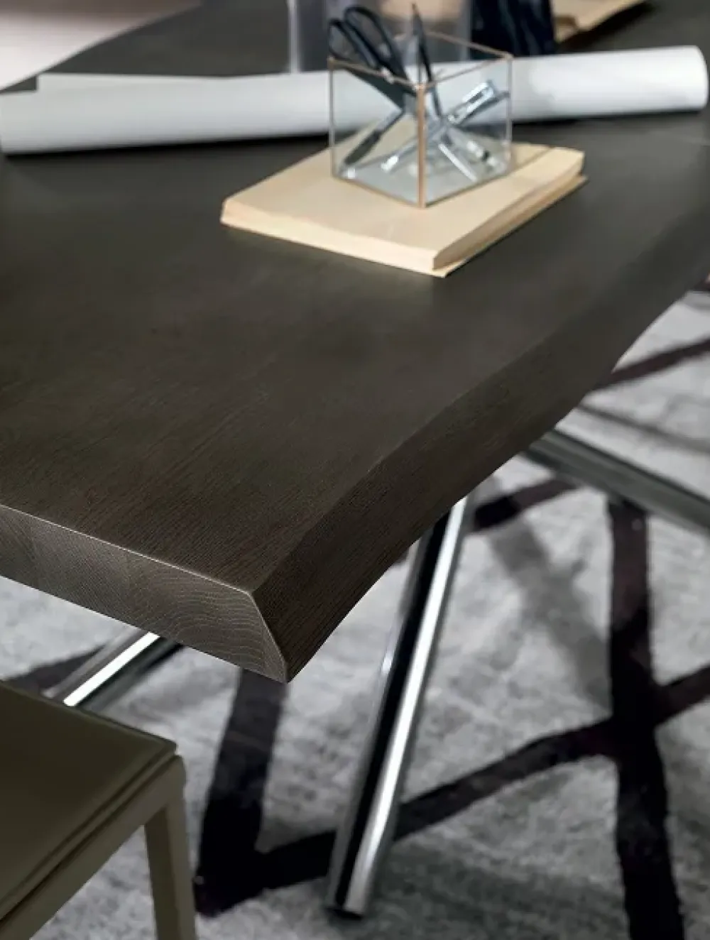 Tavolo allungabile Fahrenheit 160 di Altacom. Design originale, moderno, versatile. Fahrenheit si esprime attraverso la sua inconfondibile struttura a intreccio in metallo e le sue linee innovative. Il piano in nobilitato ha un alto spessore di 8 cm, elemento caratterizzante di questo tavolo che esalterà l’arredo della vostra casa per la sua forma scultorea e contemporanea. Fahrenheit si staglia con un elemento vivo del vostro spazio abitativo. L’offerta si intende per la versione con piano in nobilitato e base verniciata con due prolunghe interne. Sono disponibili esclusivamente su richiesta altre finiture. Dimensioni: l. 210-260 cm; p. 90 cm; l. base 160 cm; h. 75 cm.