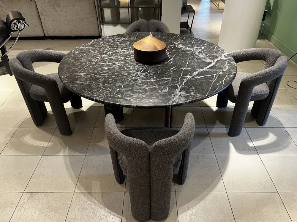 Noi sappiamo bene che per te è imprescindibile prendere in considerazione anche le finiture con cui i tavoli sono stati fatti prima di selezionarne e comprarne uno: per il modello Cassina Rotondo Sengu table 559 qui visibile il marchio ha creato un piano in marmo, studiato per completare ottimamente il locale esteticamente assicurandoti una superficie di appoggio multifunzionale e resistente dopo anni di gravoso utilizzo.