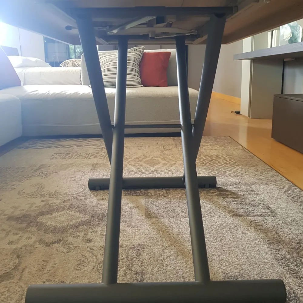 La versione in promozione si riferisce al tavolo con il piano nobilitato effetto rovere naturale e con base metallo verniciato grafite goffrato. Con un comodo sistema a leva è possibile alzarlo o abbassarlo di 3 misure a seconda delle esigenze.