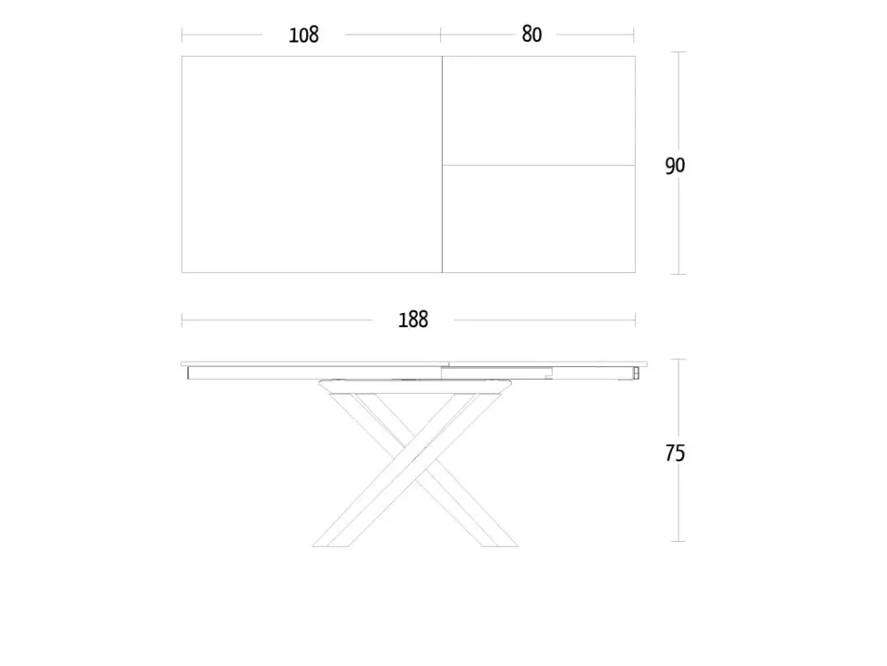 Dimensioni: 108×90 cm estensibile a 188 cm.