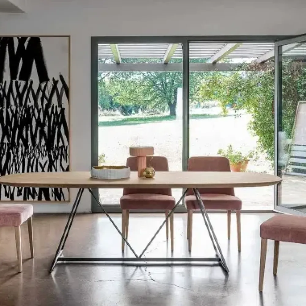 Una struttura a cavalletto ultima l’estetica del tavolo Ovale qui disponibile, che si confermerà in questo modo protagonista del living o della zona cucina dove è collocato, grazie alla sua figura di grande personalità.