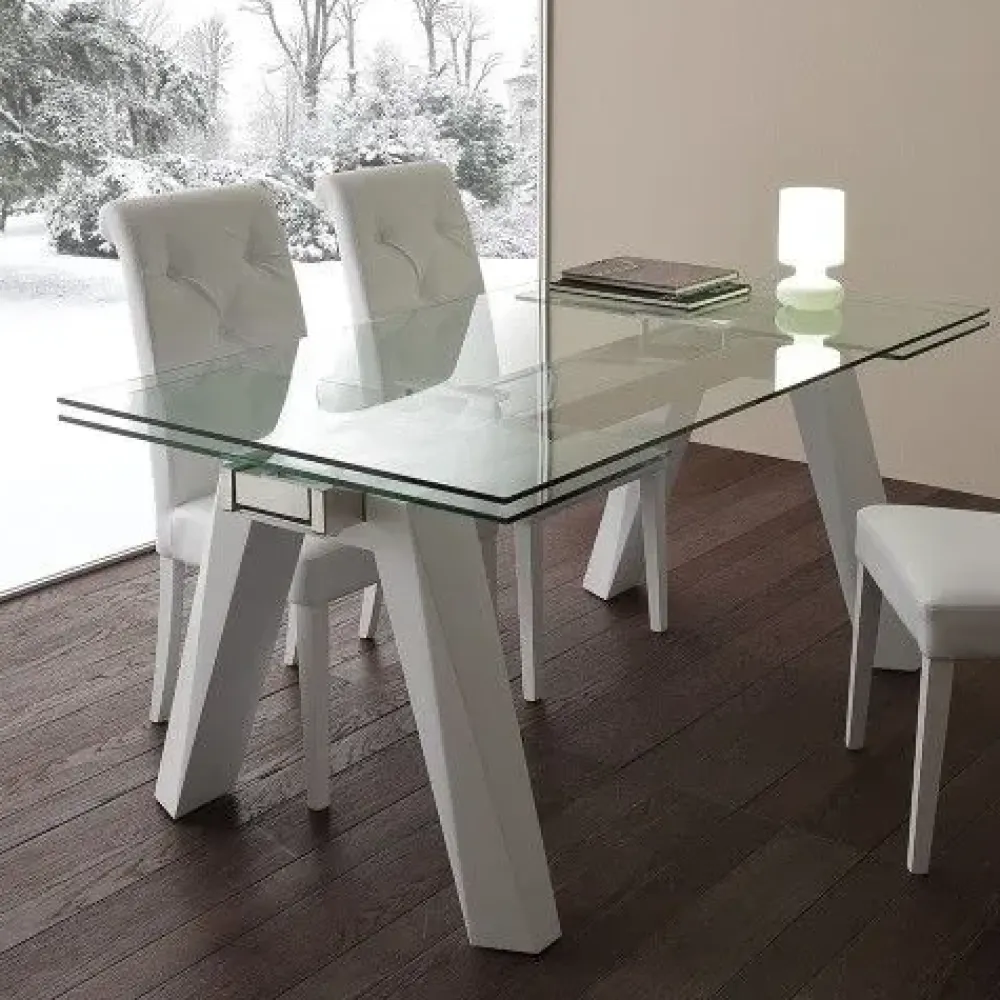 Arredo Design srls. Proponiamo a prezzi outlet il tavolo 654 Caronte con piano in vetro temperato.