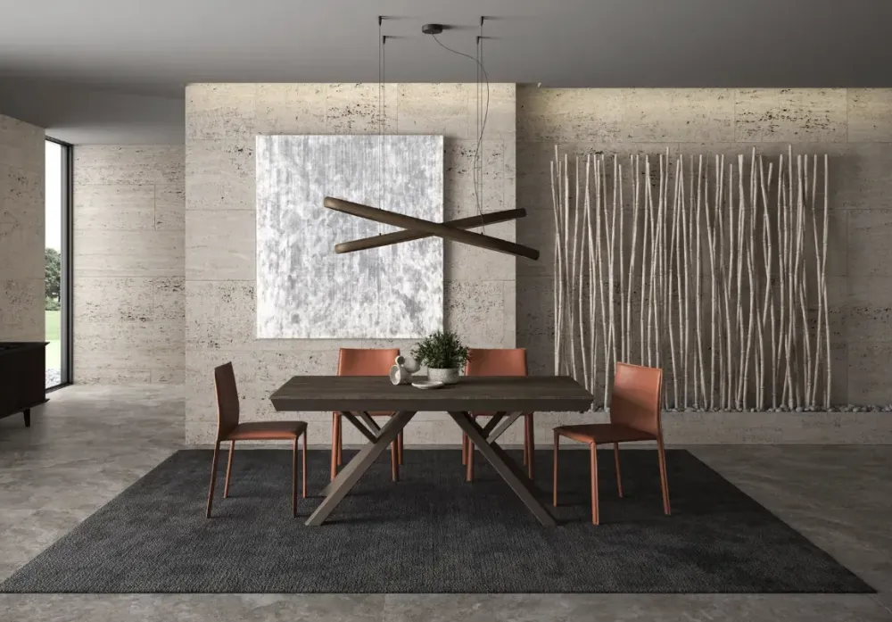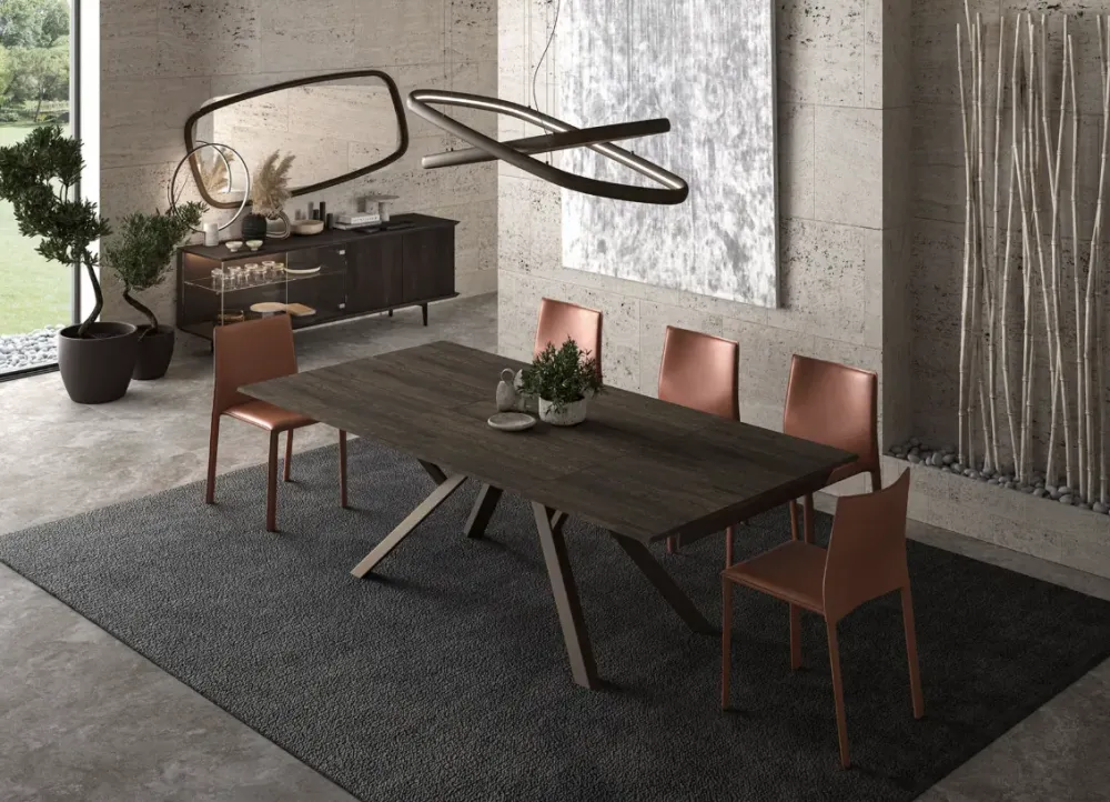 Il tavolo AMPLIANCE si distingue per il suo basamento scultoreo in alluminio, solido ma elegante, che sostiene un piano in eco legno dotato di sistemi di apertura multipli brevettati. Ogni configurazione è pensata per offrirti comfort, spazio e un estetica ricercata.