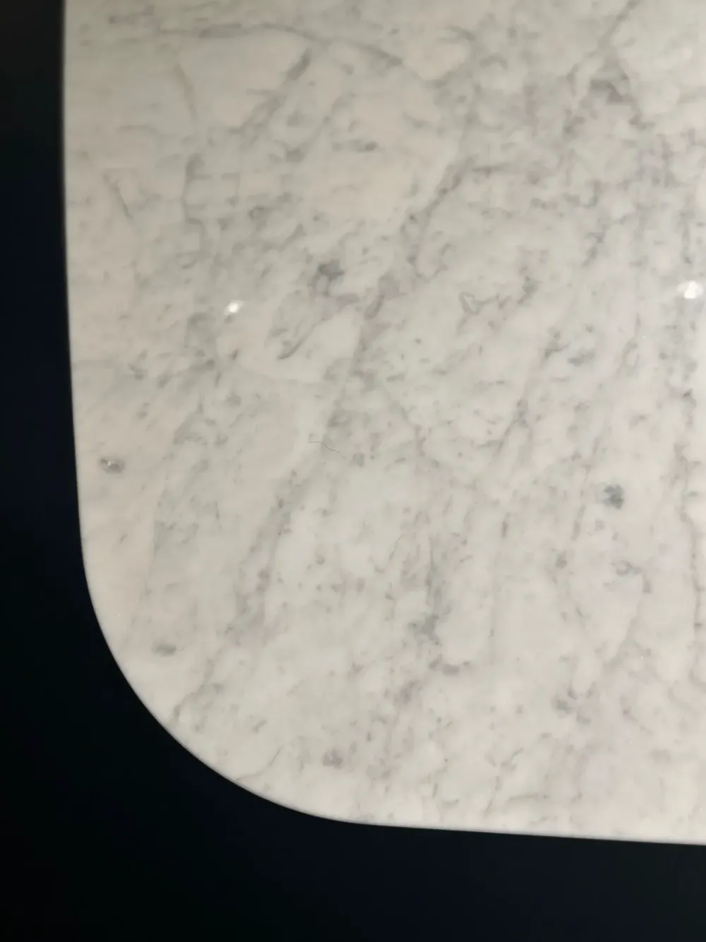 LA VERSIONE IN PRONTA CONSEGNA HA IL PIANO SAGOMATO A BOTTE IN MARMO CARRARA LUCIDO E STRUTTURA VERNICIATA PALLADIO. MISURE CM 240 X 105 X 76H