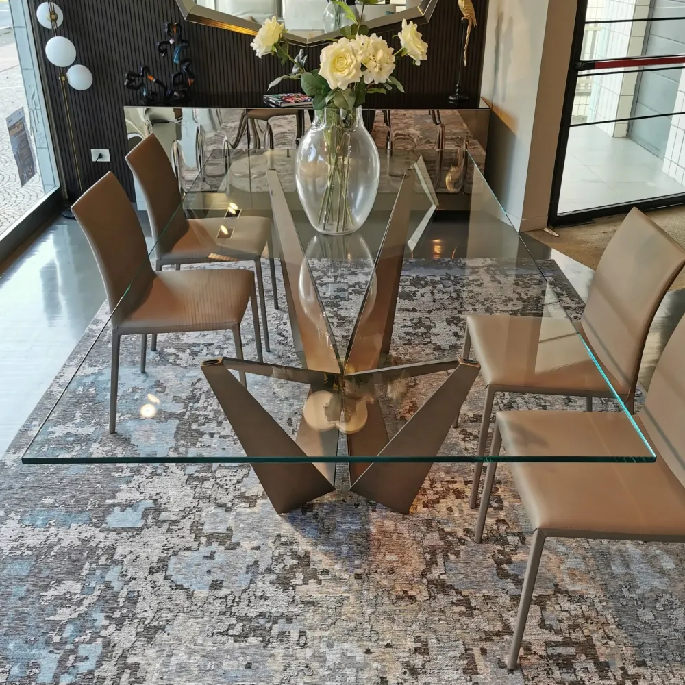Bellissimo tavolo rettangolare fisso con piano in cristallo Cattelan Italia modello Skorpio in offerta speciale per rinnovo esposizione a400,00 IVA inclusa invece di294,00 IVA Inclusa (escluso trasporto e montaggio, escluso sedie).