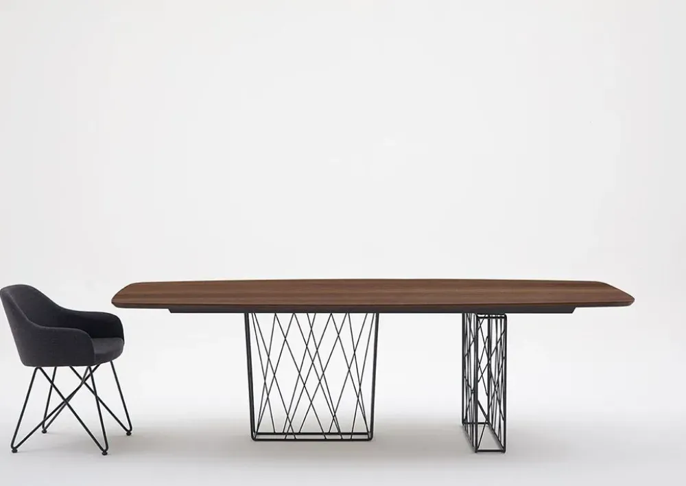 - I mobili sono da scegliere con attenzione non solo per quanto riguarda lo stile e i materiali con cui sono stati fatti, ma altresì per quanto riguarda le dimensioni e lo spazio che occupano negli interni domestici: il tavolo Sagomato T74 mikado ha una lunghezza che va da 191 a 220 cm, risultando dunque ideale per locali di diverse volumetrie.