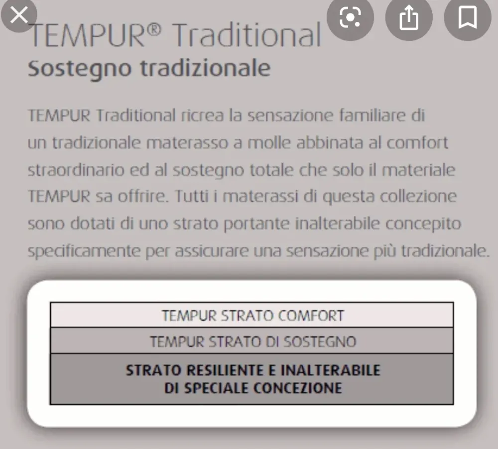 Scheda tecnica materasso Tempur sentation traditional nuovi a prezzi mai visti