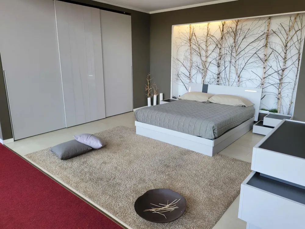 La finitura dell’armadio è in materico opaco colore MADREPERLA con vetri lucidi ed opachi colore madreperla