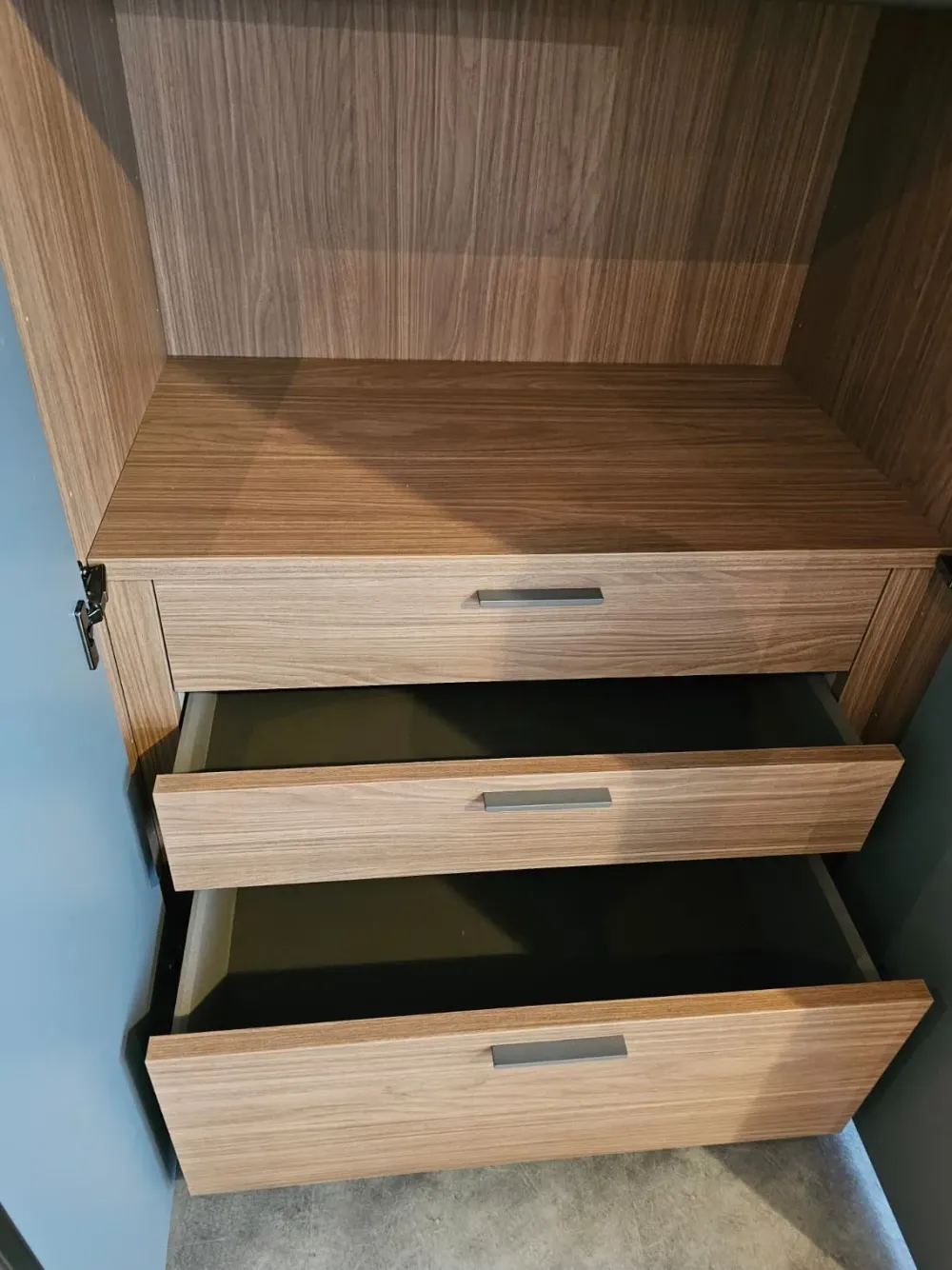 Attrezzatura interna: 3 ripiani, cassettiera 2 cassetti + 1 cestone