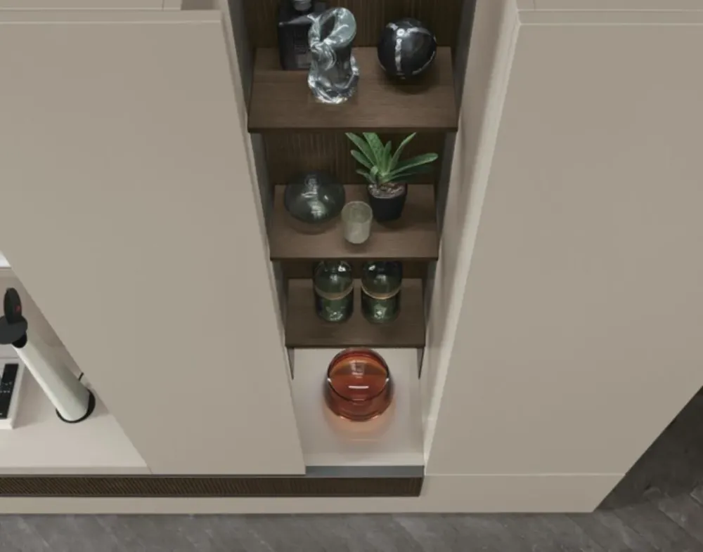 Se desideri ultimare il living con una parete attrezzta push–pull, il modello At110 presente in foto fa per te.