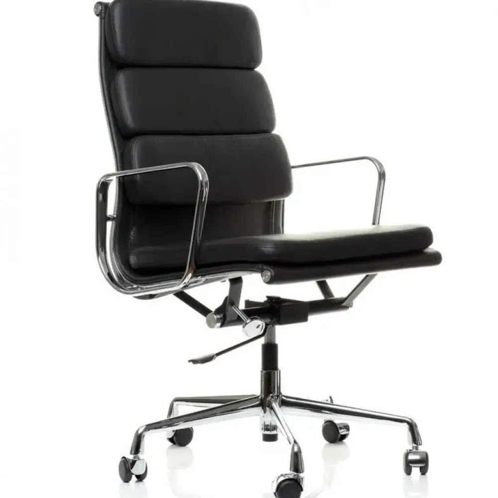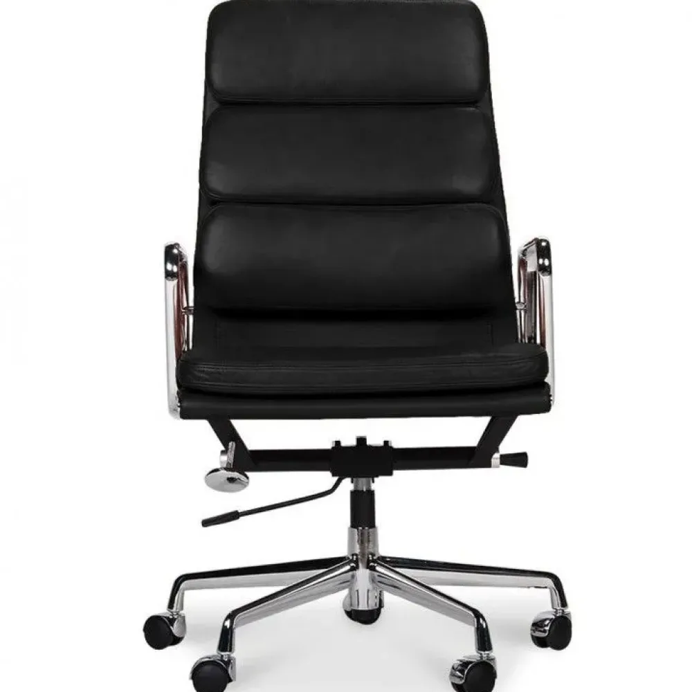 Dal desig classico la seduta da uffiio con base girevole Soft Pad in pelle, garantisce un elevato comfort grazie al suo alto schienale. Composta da una struttura in alluminio cromato, cuscini imbottiti con schiuma ad alta densità, (materiale che siadatta al corpo e poi recupera la sua forma). Rivestimento in pelle fiore italiana che garantisce resistenza col passare del tempo. Dotata di un sistema di inclinazione, altezza regolabile tramite un pistone a gas.