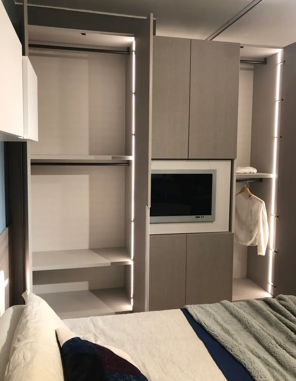 finitura armadio: melaminico Coco’, attrezzatura melaminico sesamo, fianchi melaminico pomice
