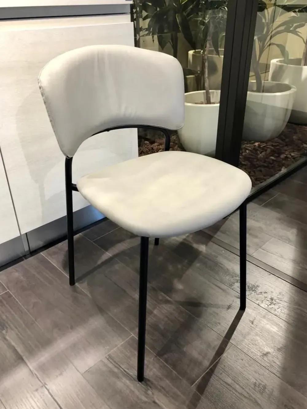 Sedia con struttura in metallo verniciato con seduta e schienale in multistrato con rivestimento in vari materiali e colori.