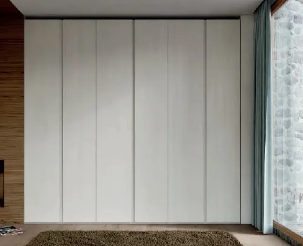 Letto SPARK giroletto sospeso, 2 comodini 1 comò WAY 1 armadio battente con 6 ante GOLA con 6 tubi appendiabiti e 3 ripiani interni sp 3 cm. Battuta parapolvere e chiusura rallentata sull’armadio in ogni singola anta. Tutti i cassetti sono dotati di guide con chiusura rallentata.