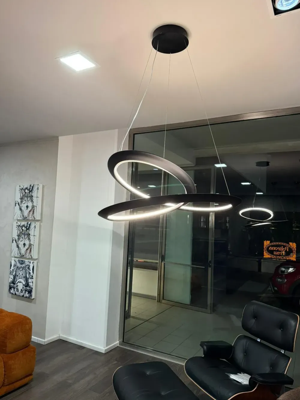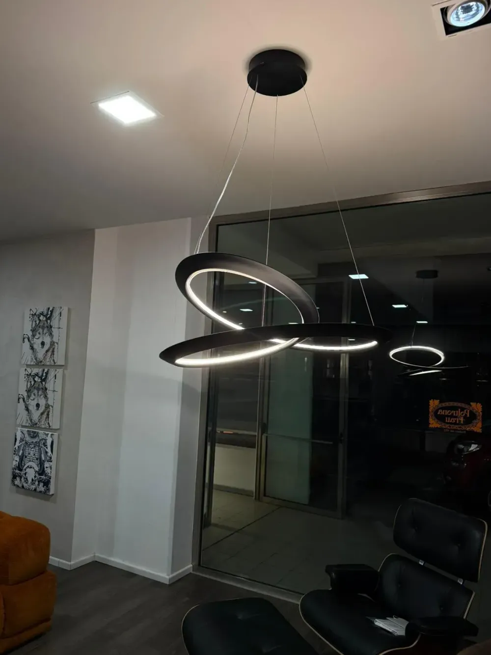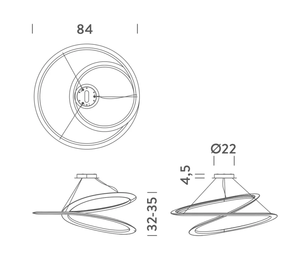Progettata dal designer Arihiro Miyake, la sua forma è ispirata al nastro di Möbius e realizzata tramite estrusione tridimensionale di alluminio, generando un effetto di continuità luminosa e scultorea.