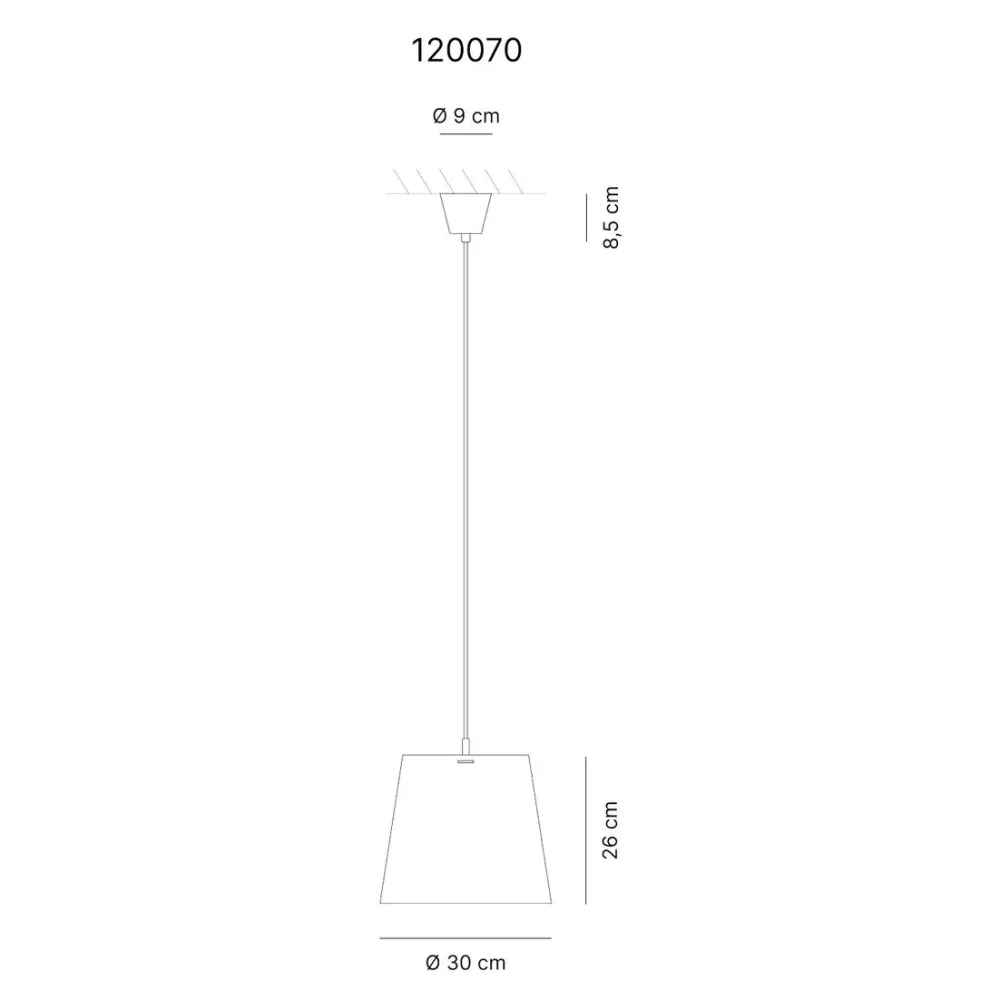 Dimensioni: Diametro paralume 30 cm. Altezza paralume 26 cm. Altezza totale max 120 cm.