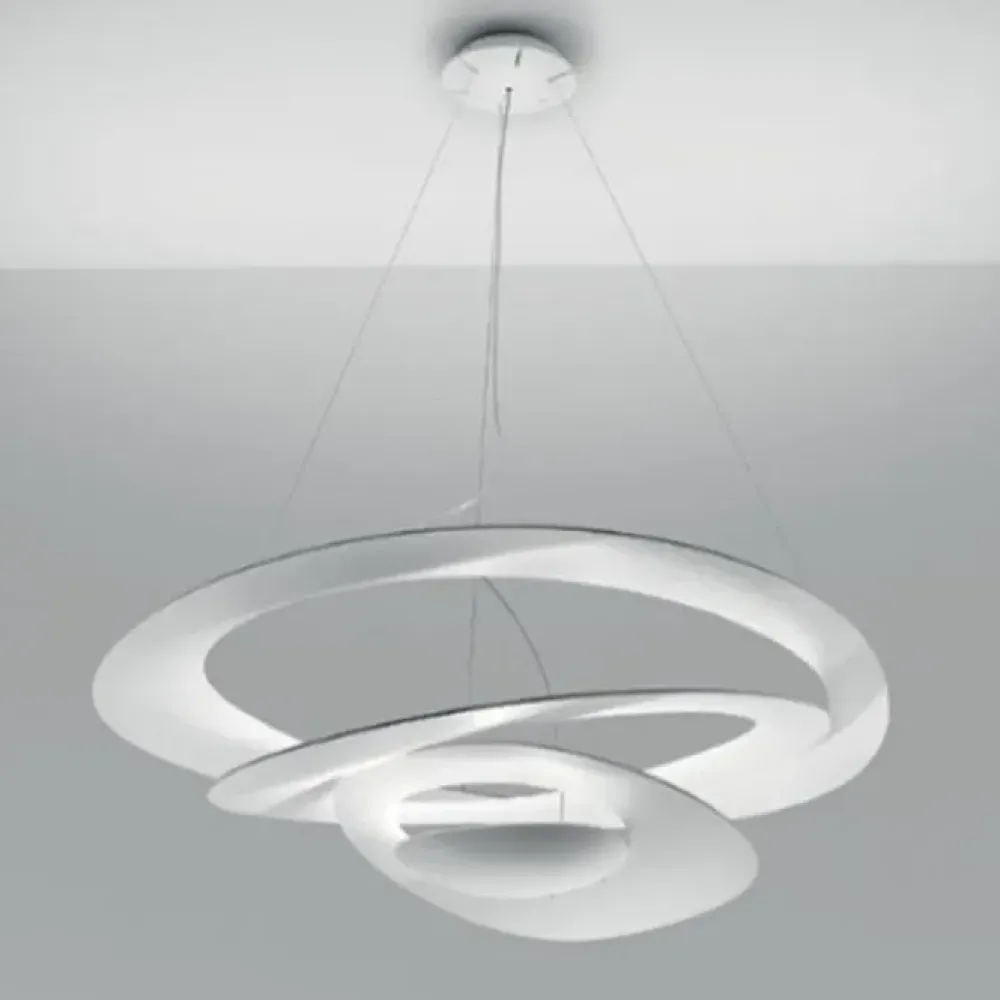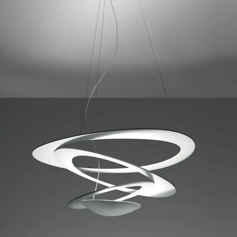 Pirce di Artemide รจ una lampada led a sospensione in alluminio . Da un disco sottile si aprono volute fluttuanti, che ricadono morbidamente verso il basso, creando magici effetti di forma e luce. Un design unico ed inimitabile ideale per saloni, openspace, studi e tanto altro. Cavi regolabili in altezza. Materiale: Alluminio Finitura: Bianco goffrato. Dimensioni: Diametro 94 cm, Altezza minima 70 cm, Altezza max 200 cm. Attacco lampada: Led integrato 44W – 3.000ยฐK- CRI90 – 3313 lumen. TASSE E TRASPORTO INCLUSI. Disponibilitร momentanea: N. 01 pezzo. Hai trovato un prezzo migliore? Contattaci al numero telefonico indicato nella mappa e scopri lo SCONTO a te riservato!