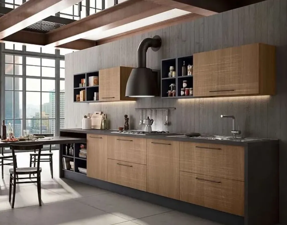 La cucina Matheria noce Ala cucine in Offerta Outlet è perfetta per stanze di ogni richiamo stilistico e misura.