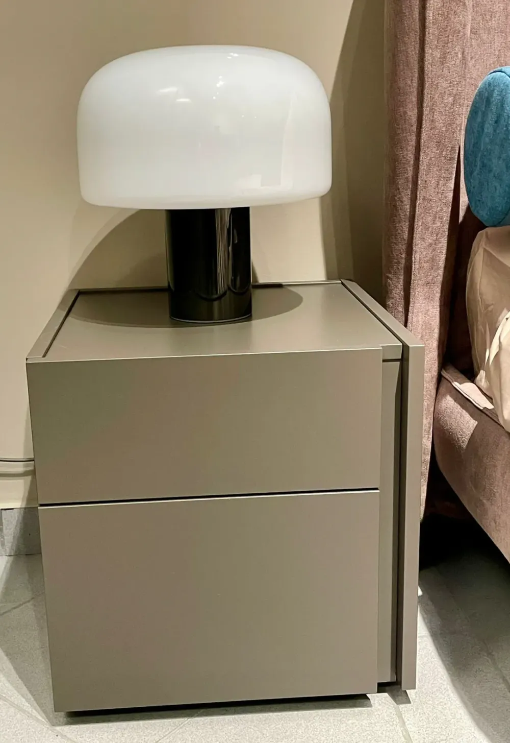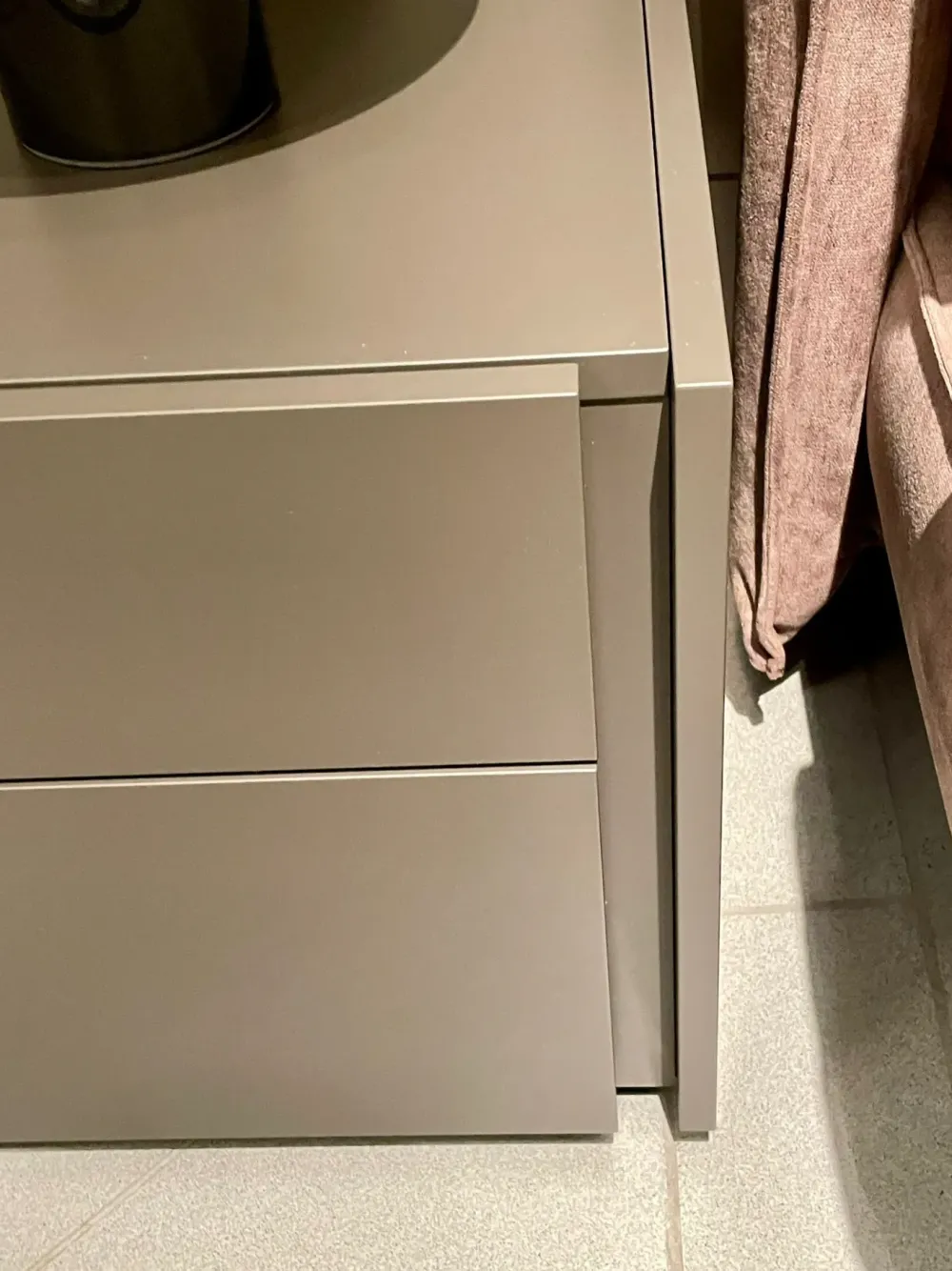 Modulo 2 cassetti in legno laccato Fango Opaco. Dimensioni L 45 x P 45 x H 47,1.