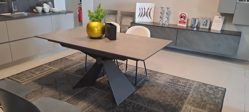 I tavoli sono, con le sedie, gli arredi più essenziali in ogni casa, proprio per questo è fondamentale sceglierli a seconda delle aspettative di praticità ed estetica: questo tavolo Sintesi consta di un piano in ceramica di grande personalità, durevole nel tempo e in grado di preservare il valore estetico del materiale, assicurandoti anche di avere una superficie di appoggio sempre disponibile.