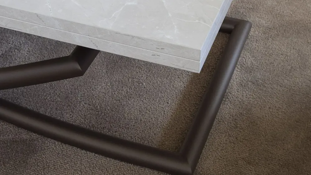 Tavolino trasformabile in tavolo da pranzo, base in metallo, meccanismo a gas, regolabile in altezza al millimetro da cm 35 a cm 75.