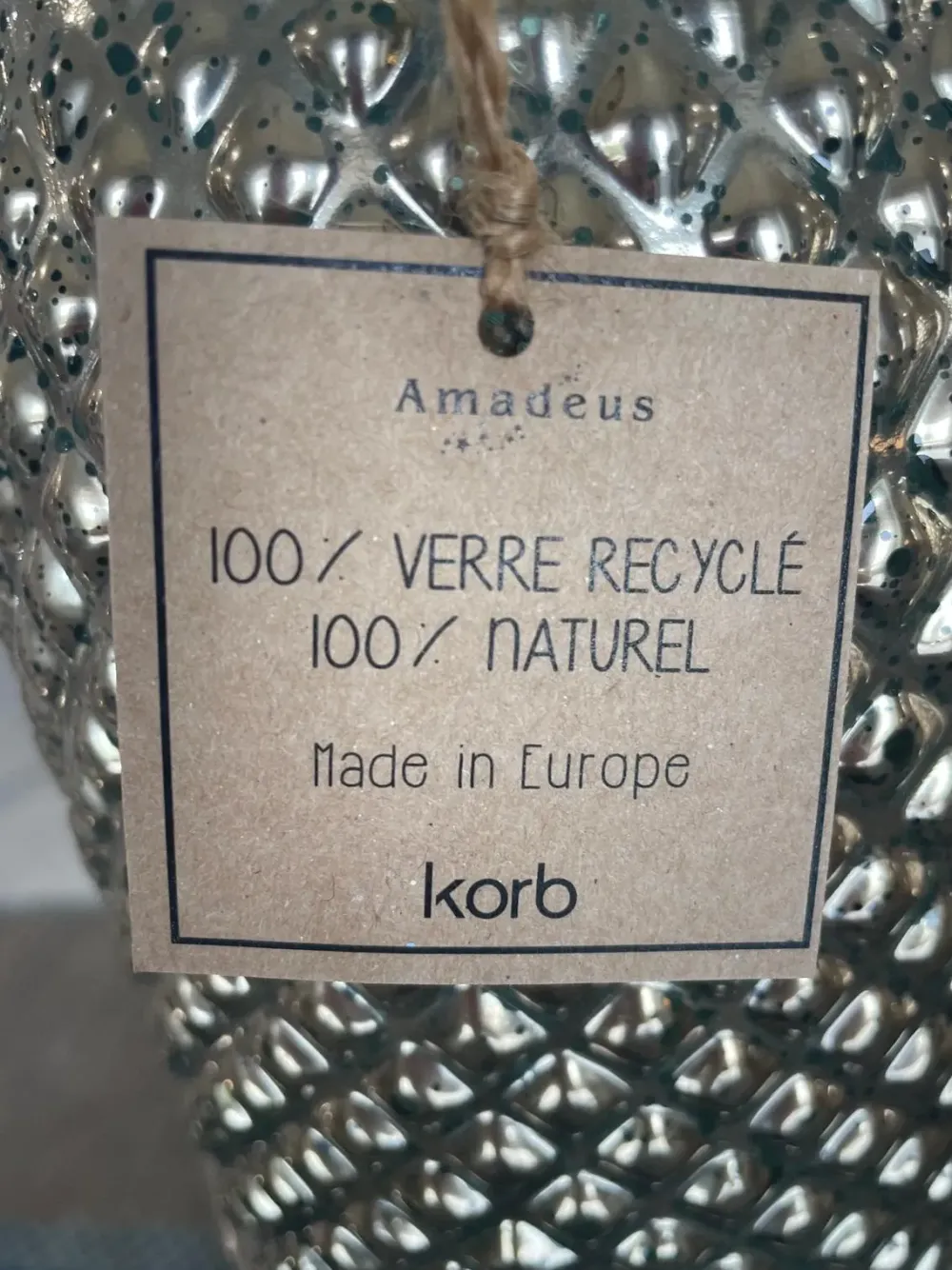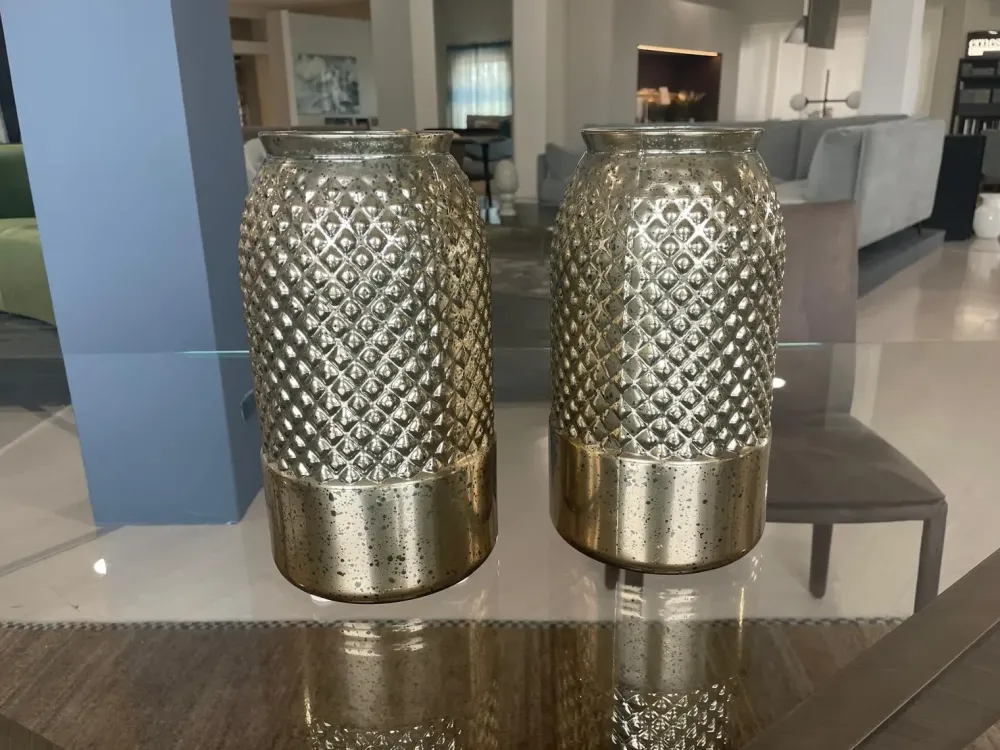 Coppia di vasi in vetro riciclato, con lavorazione, finitura oro.
