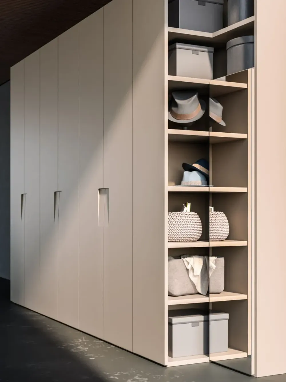 Gli armadi e le cabine armadio, che siano ad ante battenti o scorrevoli, moderni o tradizionali, devono garantirti di avere sempre a disposizione uno spazio molto ampio per porre i tuoi indumenti o oggettistica varia, adattandosi alle dimensioni della camera perfezionandone gli spazi; per non sbagliare, non dimenticare di valutare anche l’altezza del modello che fa al caso tuo. Armadio battente orme night 03, ad esempio, va da 231 a 265 cm in altezza ma potrai chiedere ai nostri professionisti d’arredo se è possibile apportare modifiche realizzabili su misura per te al modello base.