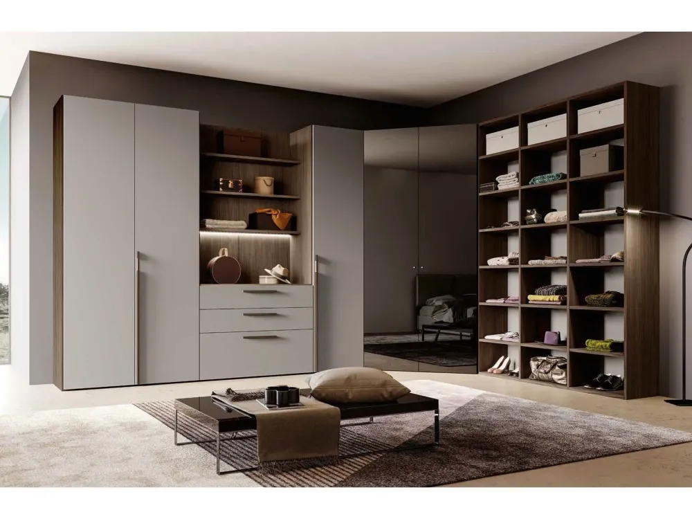 - Un armadio può essere con apertura a battente, ad ante scorrevoli o a soffietto, o può perfino avere una forma a cabina: ognuna di queste tipologie è pensata appositamente per potersi inserire alla perfezione nel locale predestinato, cosicché l’armadio garantisca un’estrema contenitività senza mai risultare d’intralcio; il modello Arm40 qui disponibile è con cabina armadio e saprà di certo organizzare al meglio gli interni.