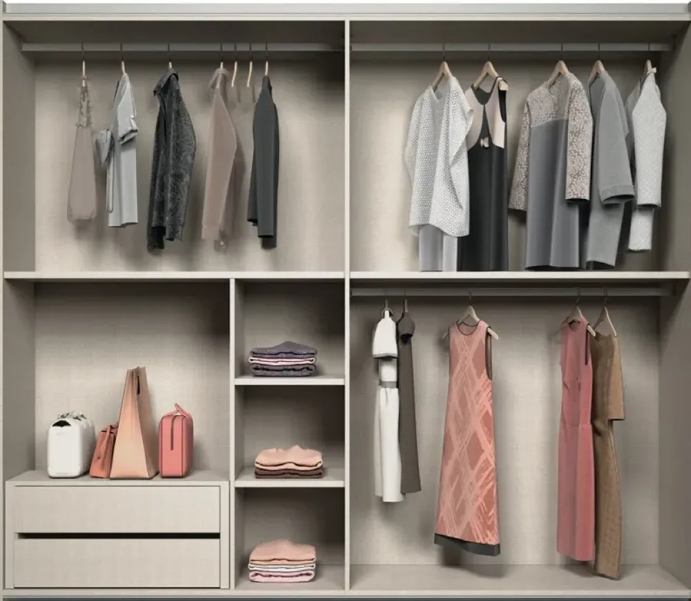 - **Specchi interni:** Se vuoi comprare sistemi con specchi da accostare a questo armadio, dovrai richiederli direttamente a noi e potrai ottenerli con un supplemento, dato che questa proposta non include nessuno specchio.
