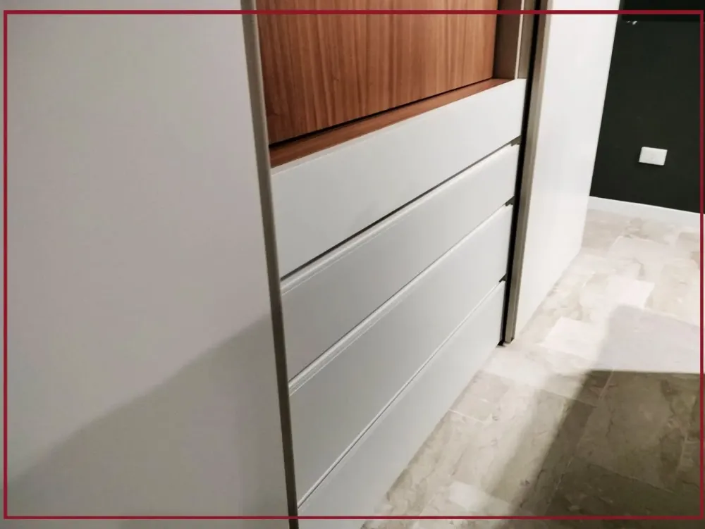Armadio combinato da due modelli BRECCIA E ODEON, con cassettiera 5 cassetti a vista, porta TV e sei ante battenti.