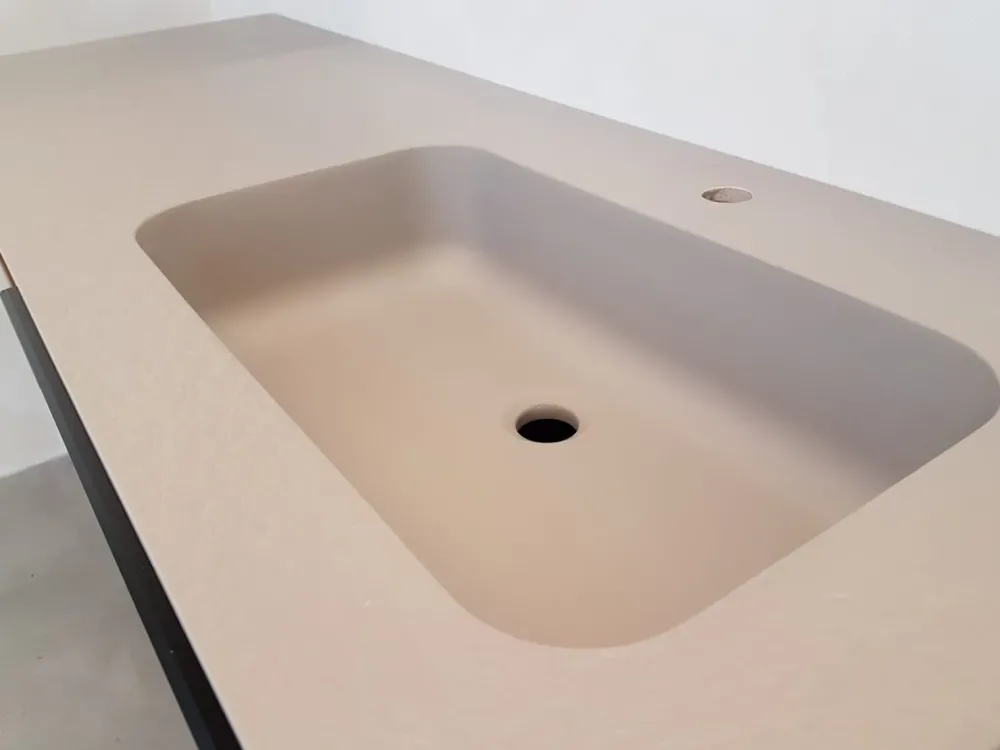 Bellissimo Bagno modello “News” in offerta outlet, composizione arredo bagno in laminato Ares Visone e laminato Sablè Oakfield, Piano con vasca integrata “Lava Tortora” sp. 12 mm, maniglia applicata laccato nero opaco e elemento metallo di supporto laterale con portasciugamano integrata laccato nero opaco. L’arredo bagno è visionabile presso il nostro showroom di Limbiate in Corso Como 36. Le dimensioni generali del bagno sono: larghezza 151,5 cm – Altezza basi da terra 85 cm – profondità 21 / 51 cm. Il prezzo si intende iva compresa e costo di trasporto e montaggio da concordarsi
