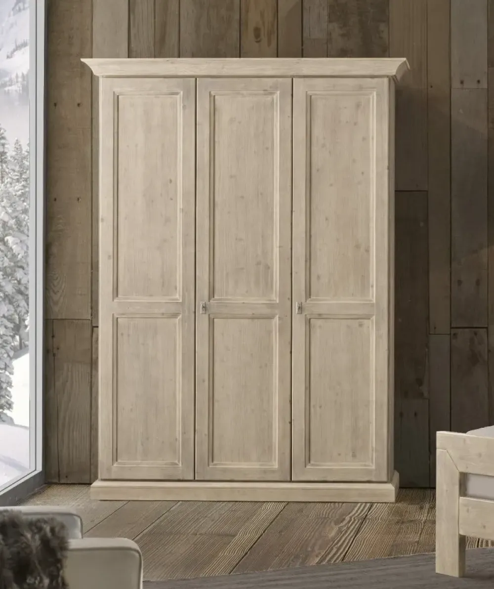 Mottes mobili propone questo armadio a 3 ante battenti in legno di Abete massello in finitura sbiancata, personalizzabile con altri colori, completo di cassettiera interna a 2 cassetti, 4 ripiani e 1 tubo appendiabito. Lo proponiamo compreso Iva e trasporto a Euro 1.900,00 escluso il montaggio