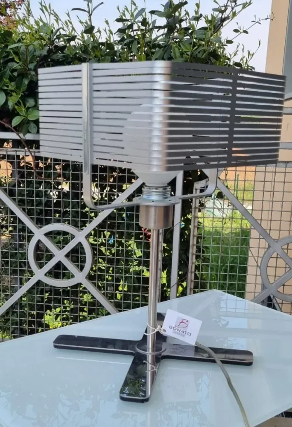 Lampada da tavolo AndCosta modello IX Table con base in acciaio.